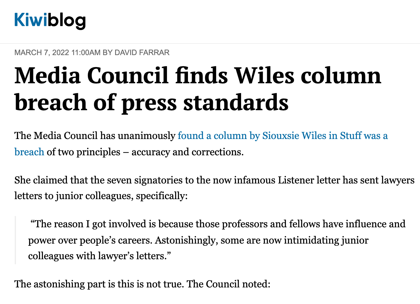 ….Dr Wiles … sent an inflammatory tweet to urge her academic peers to sign: “Calling all academics in Aotearoa New Zealand. Add your name to the open letter if you are also appalled by that letter claiming to defend science published last week in the NZ Listener. It’s caused untold harm and hurt & points to major problems with some of our colleagues.”
