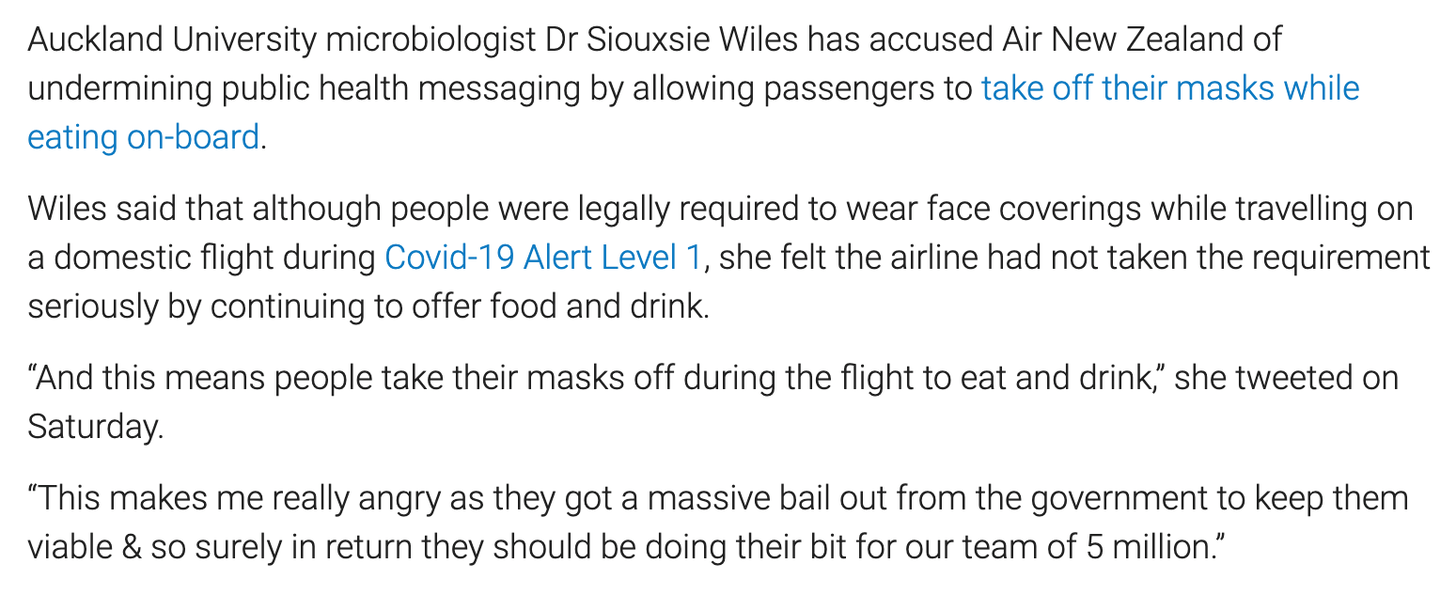 Over and over and over this single scientist was featured in New Zealand media, to the near exclusion of all others… except the one who told us masks were useless because we could be infected through our eyes, and the other one who predicted 80,000 covid deaths.