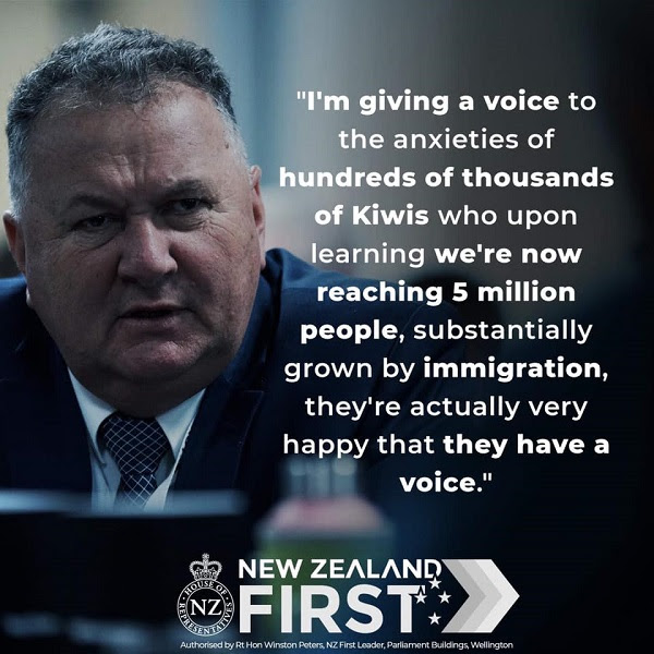 New Zealand First is giving a voice to the concerns of ordinary Kiwis about population growth putting stress on state services and infrastructure.
