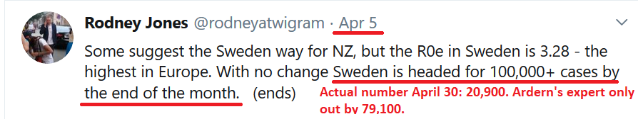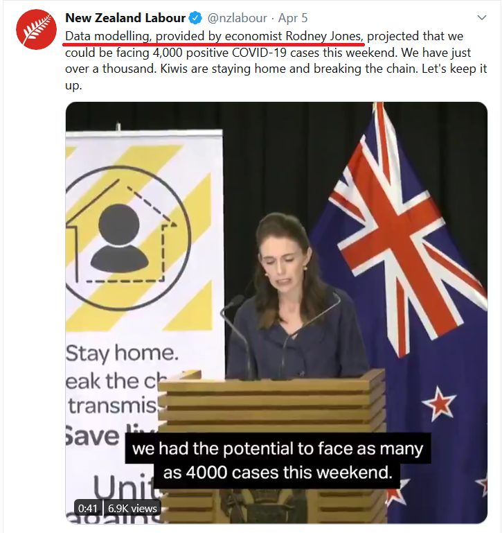 From 200 cases to 10,000 in two weeks? Did the ‘modelling’ that Ardern spoke of come from the Health Ministry, Treasury maybe, MBIE, infectious disease specialists or epidemiologists, the WHO, the CDC? No, the Prime Minister regurgitated the expert knowledge from none of those sober and serious specialists: it came from Rodney Jones. Who?