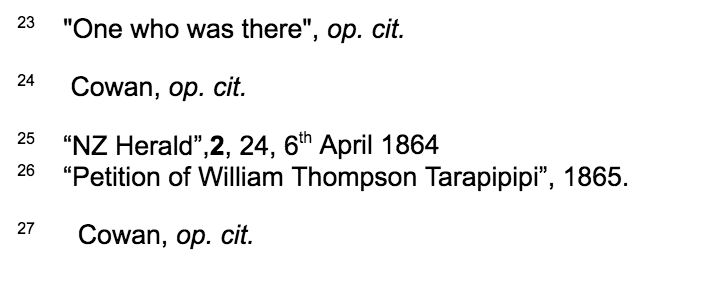 The recent rediscovery of consistent accounts of two participants, a member of Cameron’s force and a Maori named Potatau who was a lad at the centre of the action (12) give us now a more accurate picture of the true story than even celebrated historian James Cowan (13) was able to achieve. It is of critical importance that the truth so revealed be told.