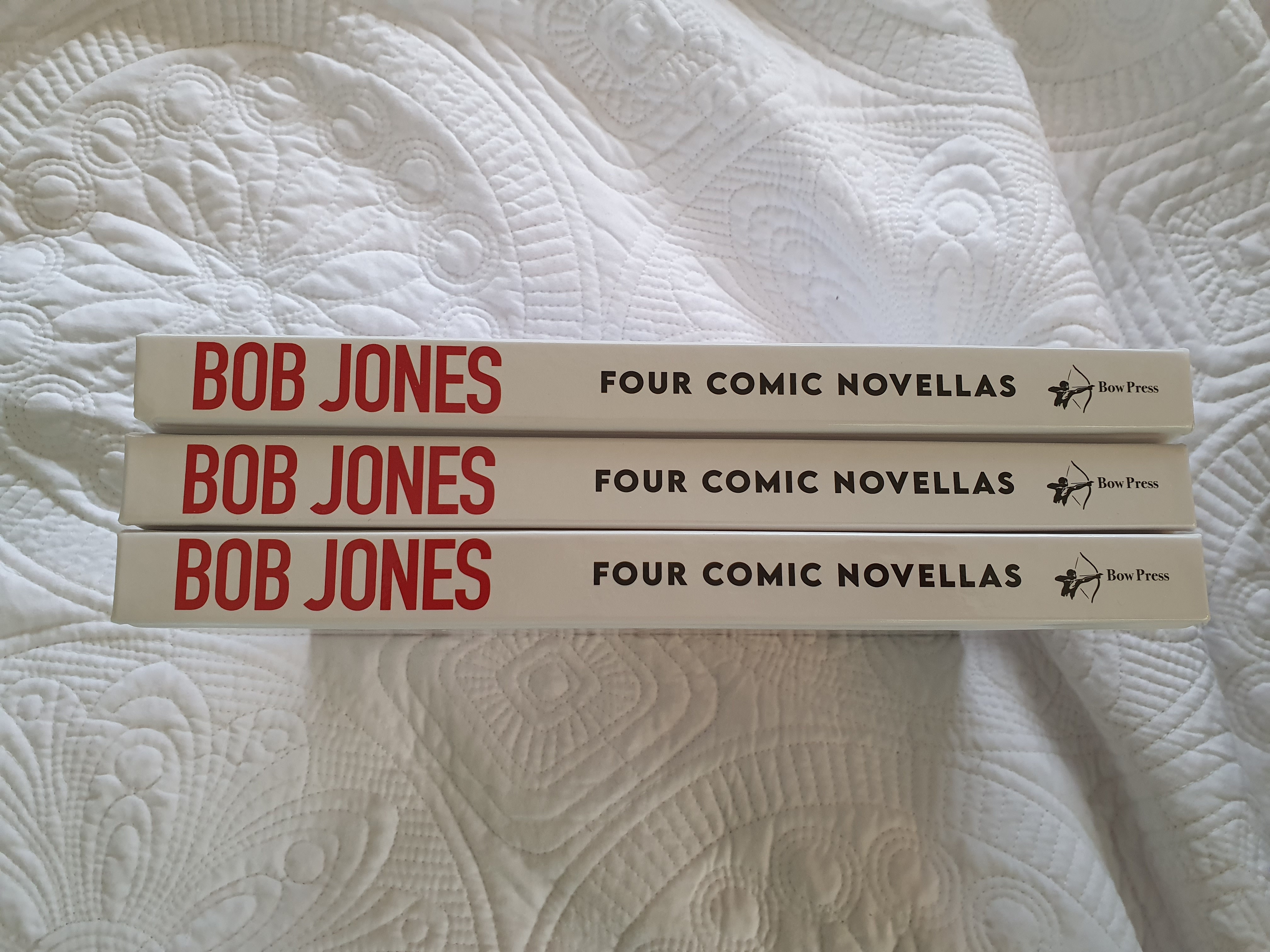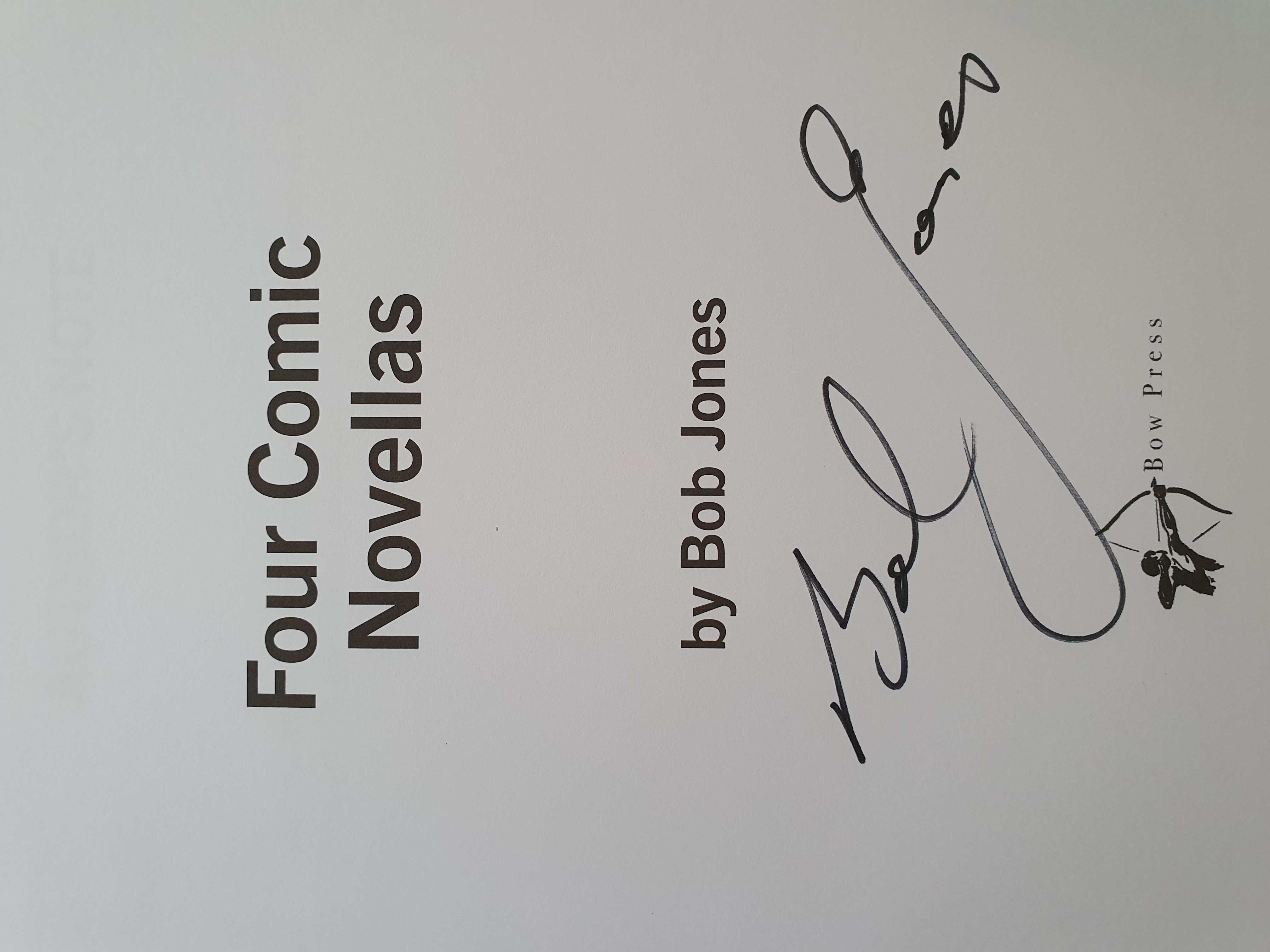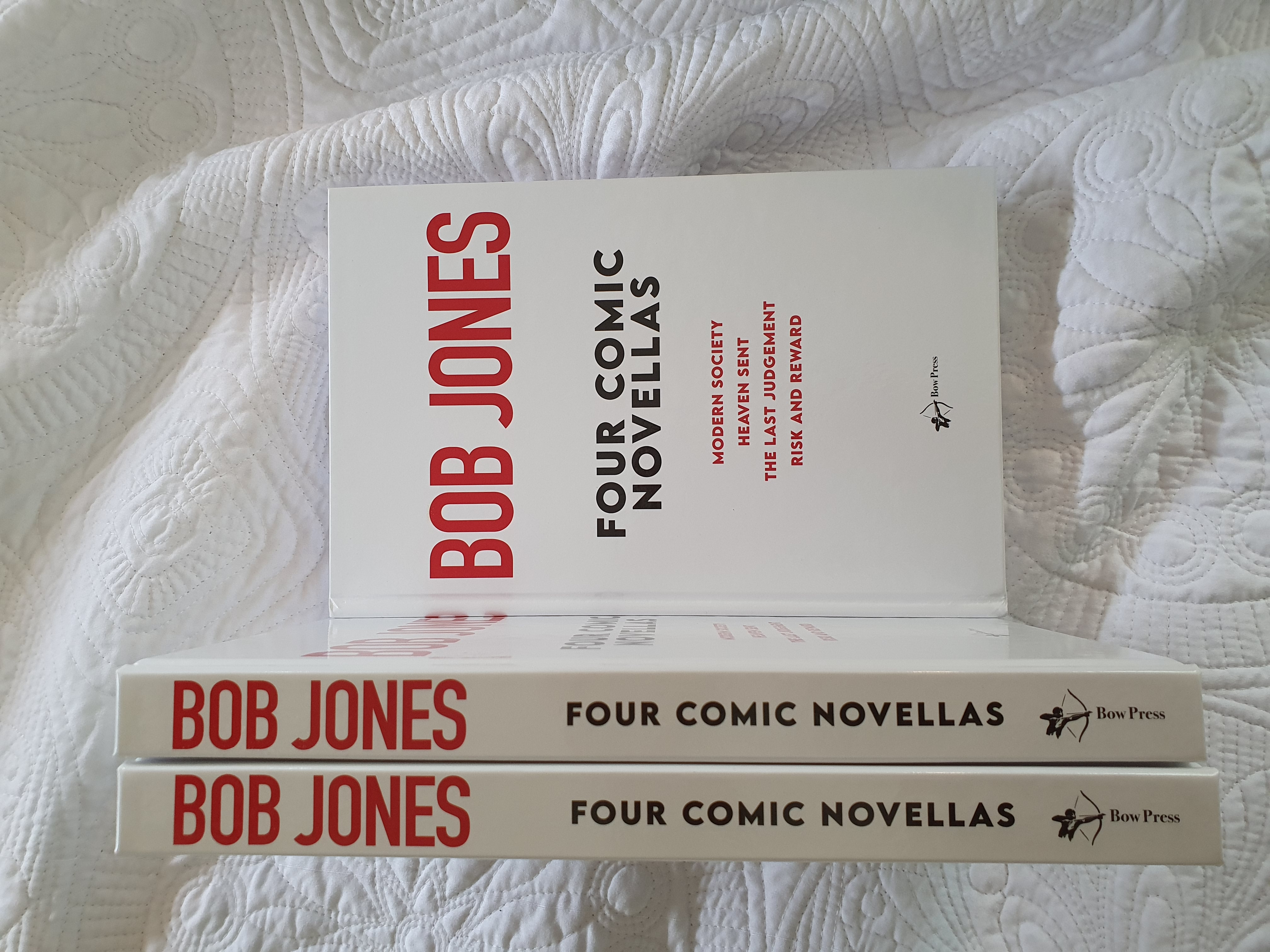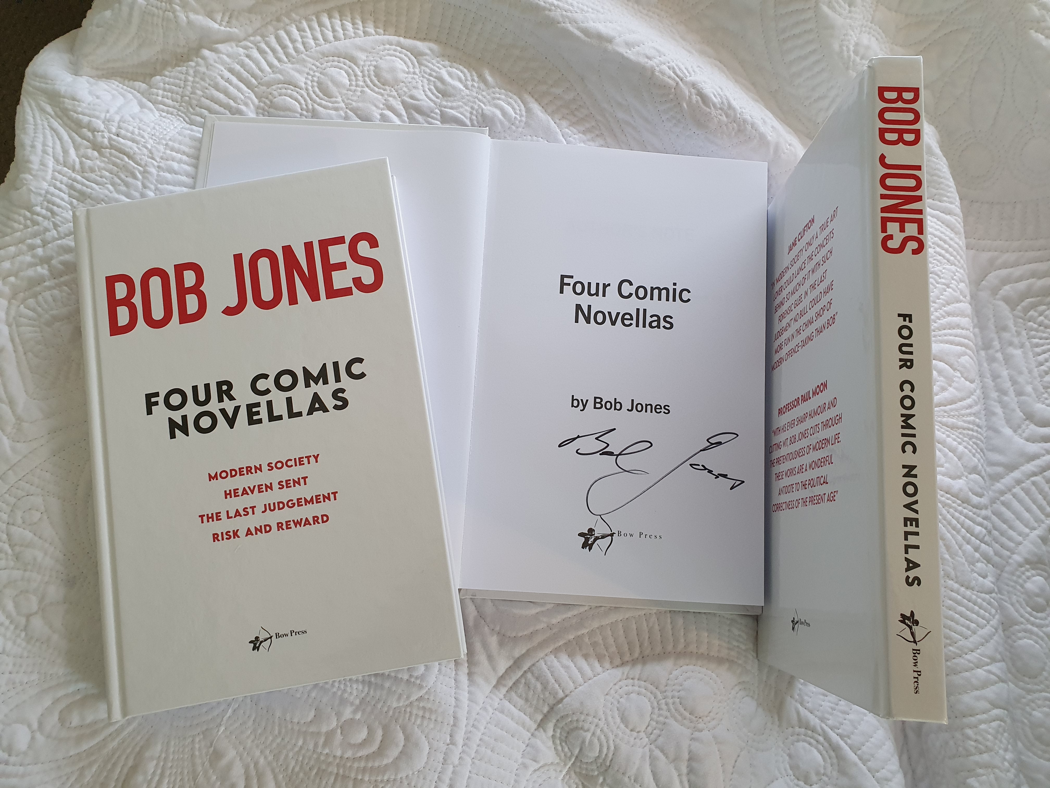 The prizes will be a signed First edition copy of Sir Bob Jones’ latest book, Four Comic Novellas: Modern Society, Heaven Sent, The Last Judgement and Risk and Reward