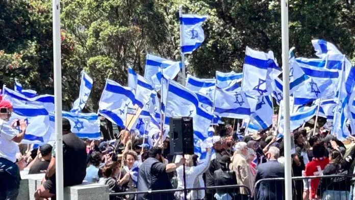 Around 700 supporters of Israel and the Jewish people turned up (in contrast to about 300 pro-Islamic extremists) and we simply drowned out what I’m sure its organisers were hoping would be a PR coup. The effect of our stand – which was peaceful but loud – was immediate and clearly apparent in the anxiety and alarm which spread through the participants and speakers in the extremist rally. After a few inaudible speeches, and after being subjected to yet another powerful pro-Israel Māori haka, they finished early and scurried away.