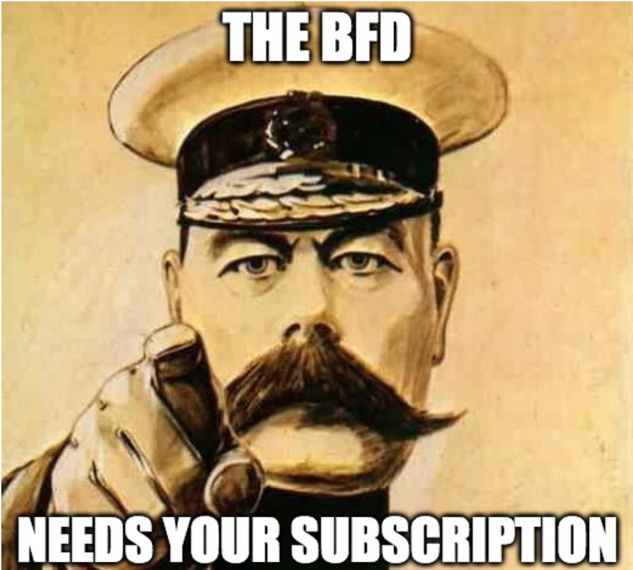 Your subscription to the BFD makes you a crucial member of the BFD team.