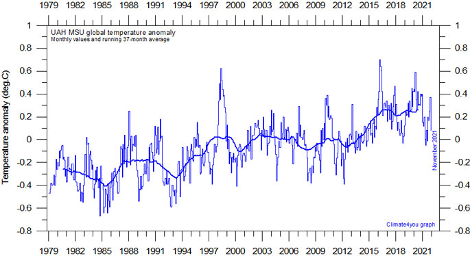 The following data sets and comments are from the climate4you.com website developed by Professor Ole Humlum who is a Danish Professor Emeritus of Physical Geography at the University of Oslo, and Adjunct Professor of Physical Geography at the University Centre in Svalbard.