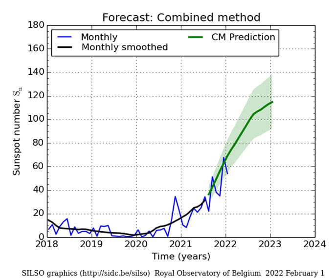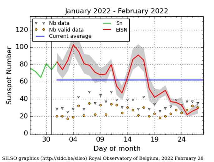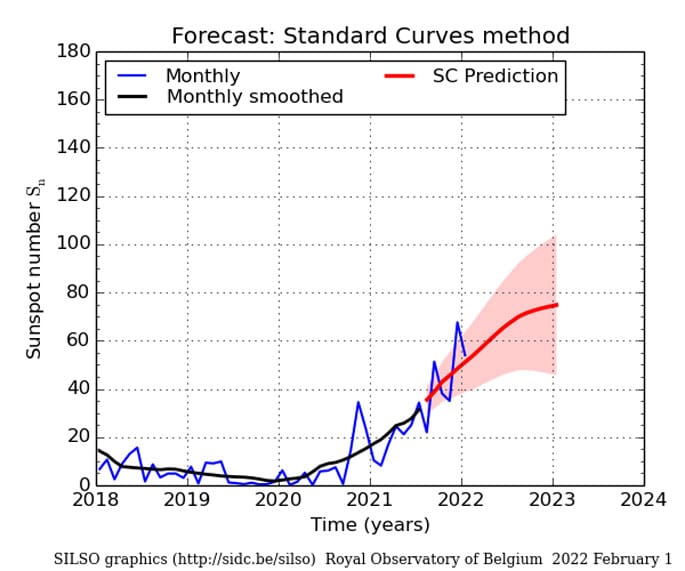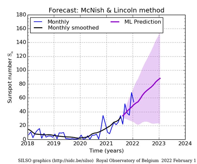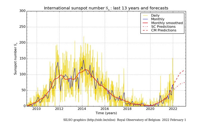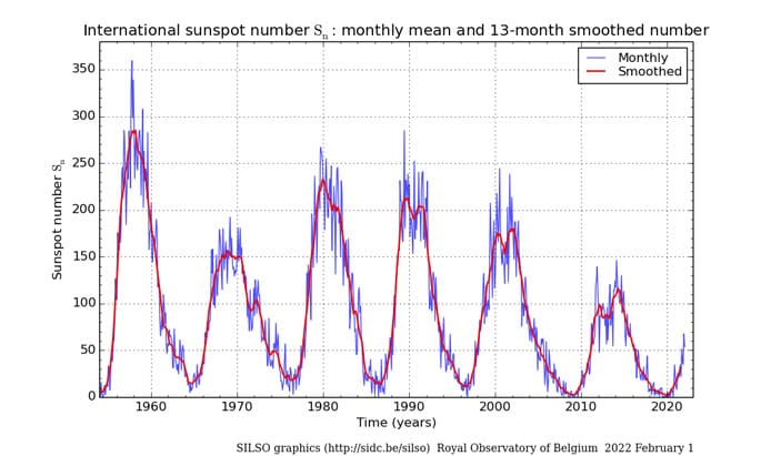 The NASA solar physics website, and other websites such as the Royal Observatory of Belgium, include information on sunspot numbers, the ‘Maunder Minimum’ and sunspot cycle predictions.