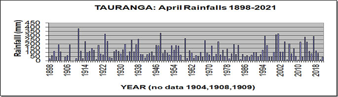 The long-term average rainfall for Tauranga for April is 120 mm.