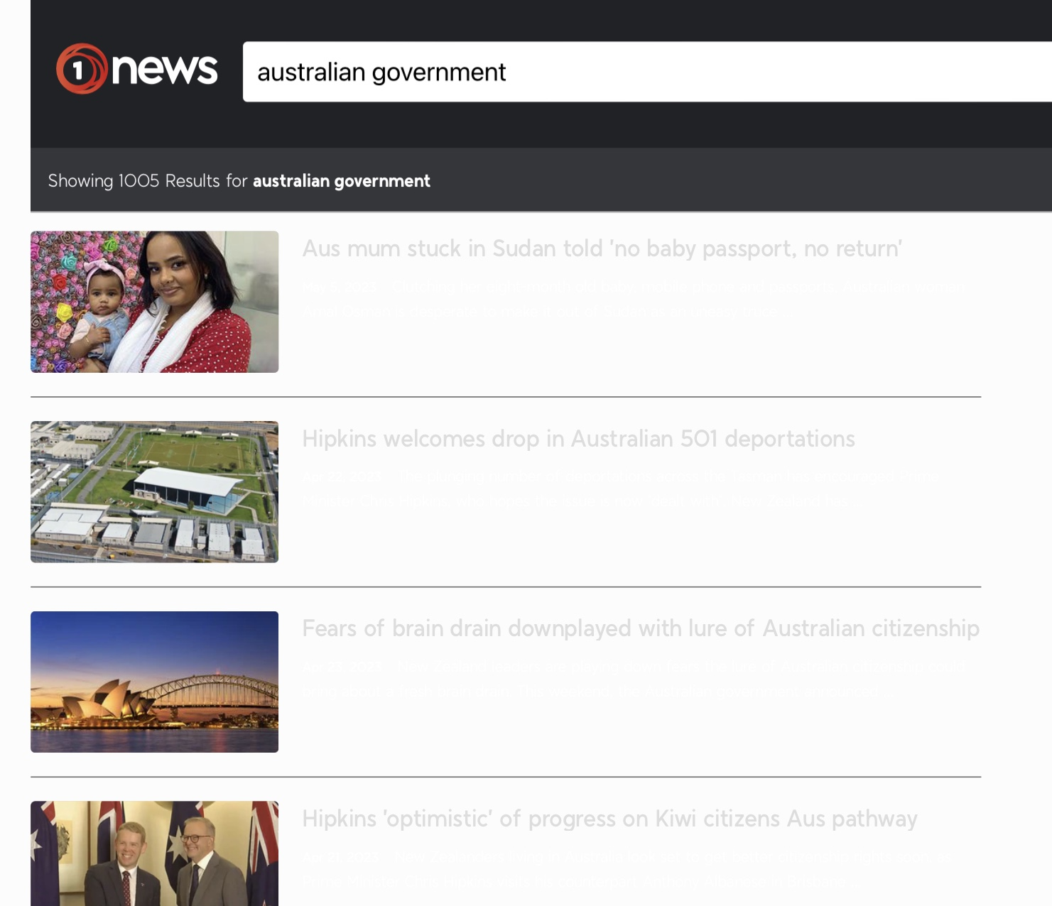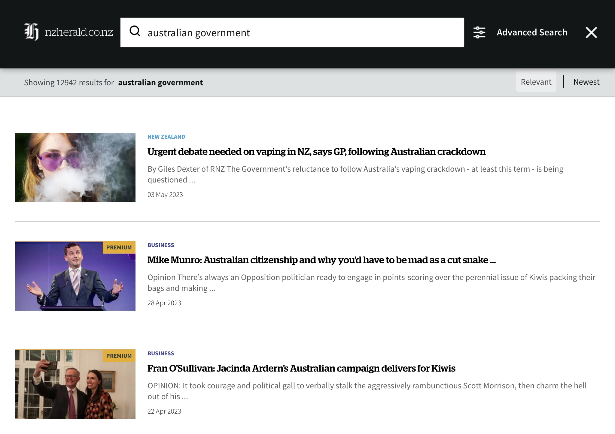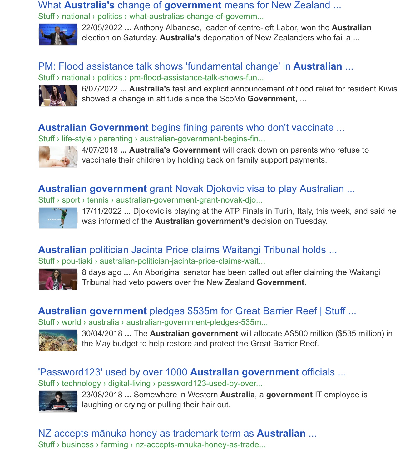 Here’s a screenshot of my search for the week’s Covid news on a popular NZ news site under Australian Government: