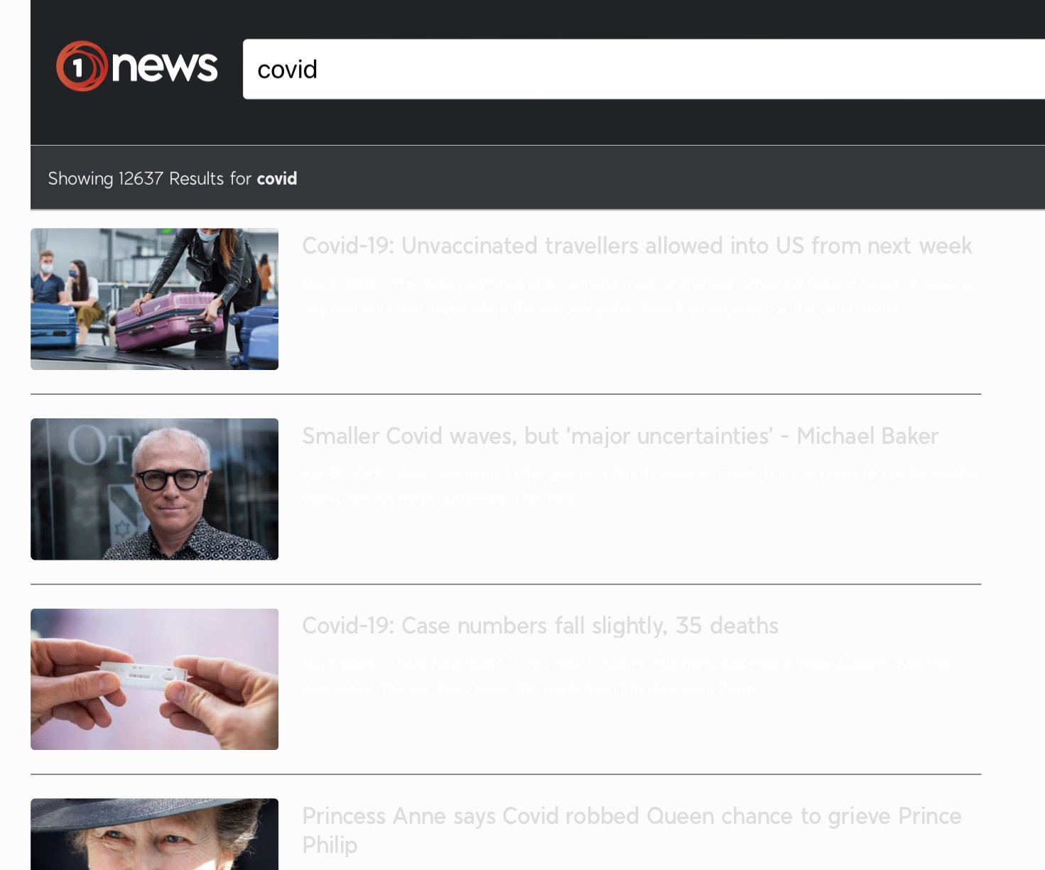 Another search of the same site for Covid under latest news (slow news for a New Lynn murder trial to get in there?):