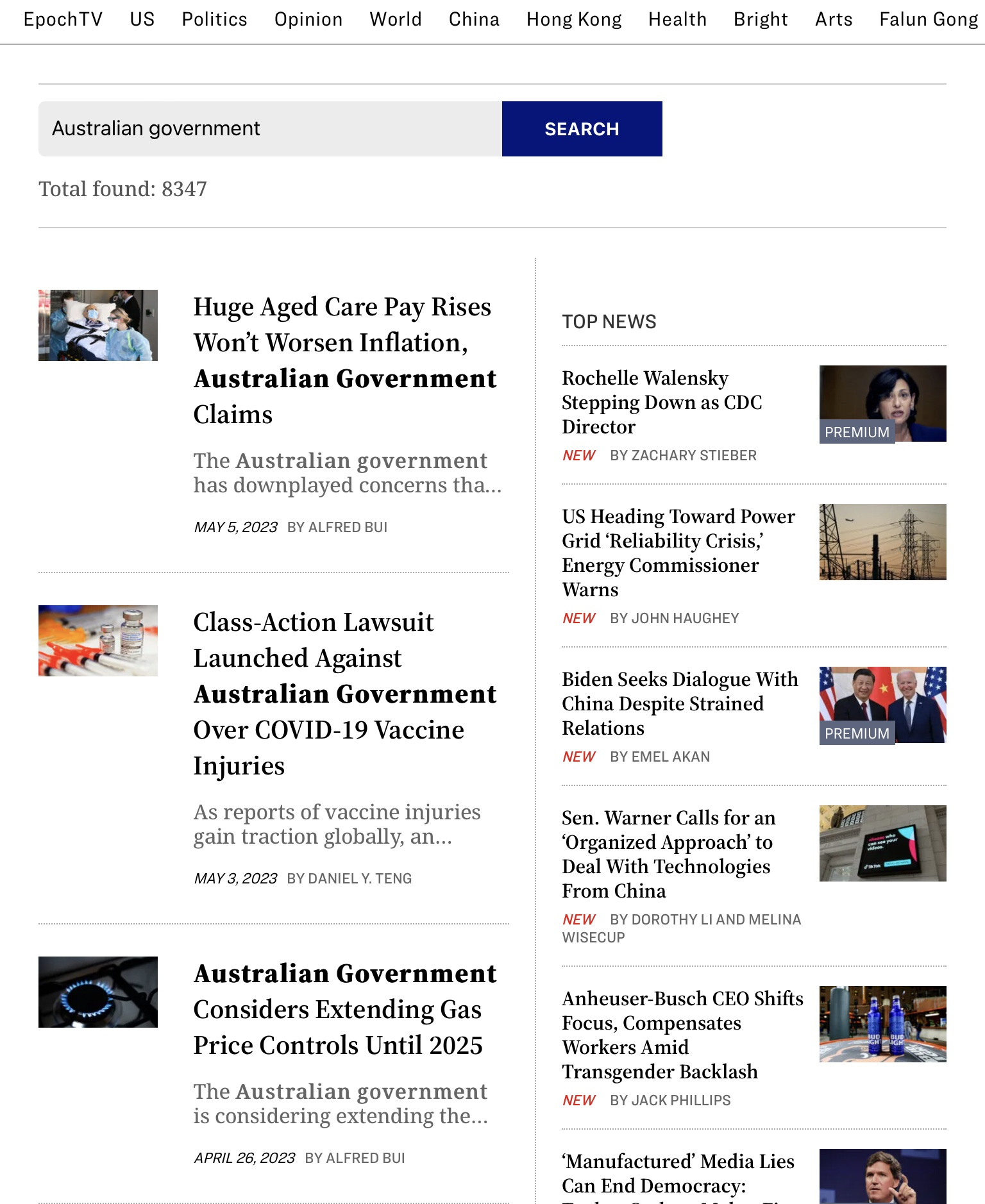 A search on this popular news site for ‘Australian Government’ only turned up old and irrelevant Covid ‘news’, although it was good to be reminded that in 2018 Australians were fined for not vaccinating their children: