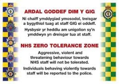 Similar to the one below which is found in hospitals, but without the Welsh.