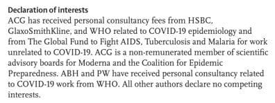 The conflicts of interest run too deep for this article, but some vested interests are worth highlighting here. According to filmmaker Lilian Franck in her 2018 documentary TrustWHO, Neil Ferguson was receiving consultancy fees from at least three vaccine manufacturers at the time of his involvement as an advisor on Swine Flu in 2009.