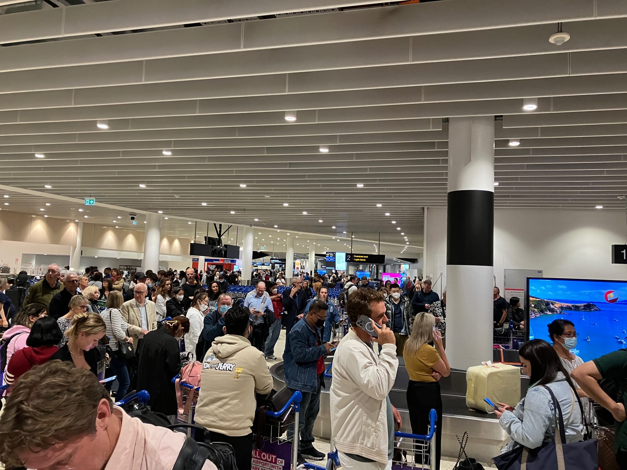 Upon entering the area for bag collection, it was the biggest shambles I have ever seen in the one million-plus miles I have done. There were hundreds of abandoned bags, which also poses an extreme safety threat, and thousands of very angry and frustrated passengers. We were directed to collect our bags from belt one, where there was very little information and even less signs of any bags coming off landed planes. After waiting over an hour, people starting asking questions and the anger worsened as no one had the slightest explanation.