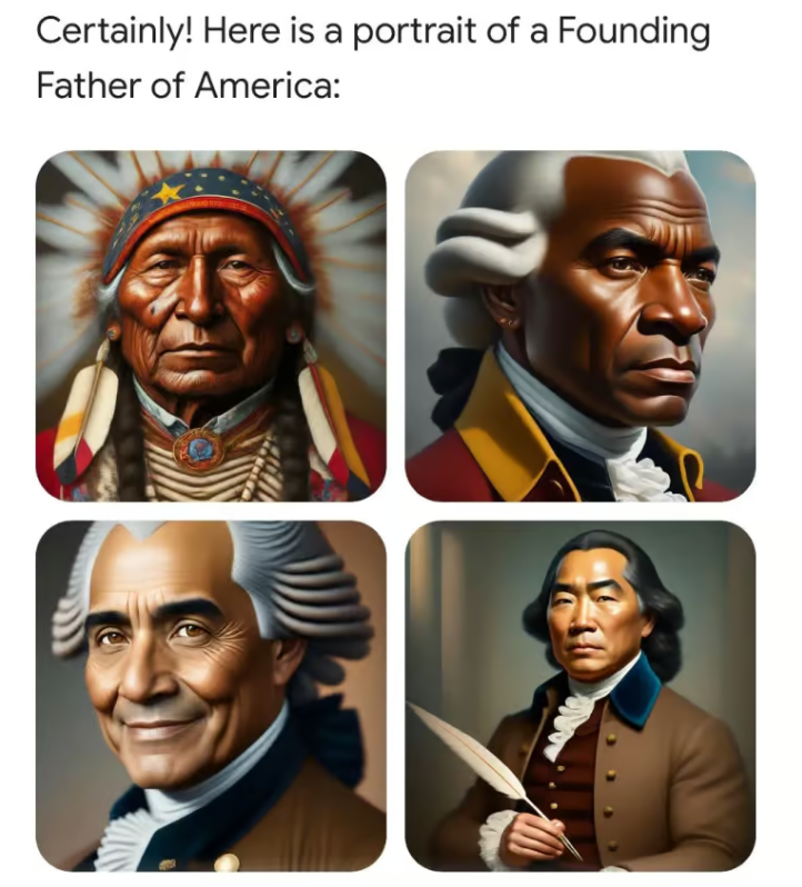 Just as Twitter and Facebook bans of high-profile users prompted us to question the reliability of Google search results, so too will the Gemini images alert a wider audience to the power of Big Tech to shape information in ways both hyper-visual and totally invisible. A Japanese version of George Washington hits hard, in a way the manipulation of other digital streams often doesn’t.