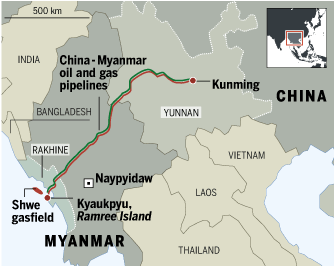 Following on from the dam projects China developed its belt and road initiative and built the oil and gas pipeline project from Myanmar to Yunnan province. China built this to reduce the roadblock that is the Malacca Strait which is the route for most of its oil imports from North Africa and the Middle East. Since the beginning of its construction in June 2010, the pipeline project has enjoyed smooth progress. Although Chinese analysts acknowledge that such pipelines will not free China from its strategic vulnerability in the event of a military blockade of the Malacca Strait, expectations remain high that the pipeline project will aid China’s desired expansion of trade relations with Myanmar Southeast Asia and South Asia.