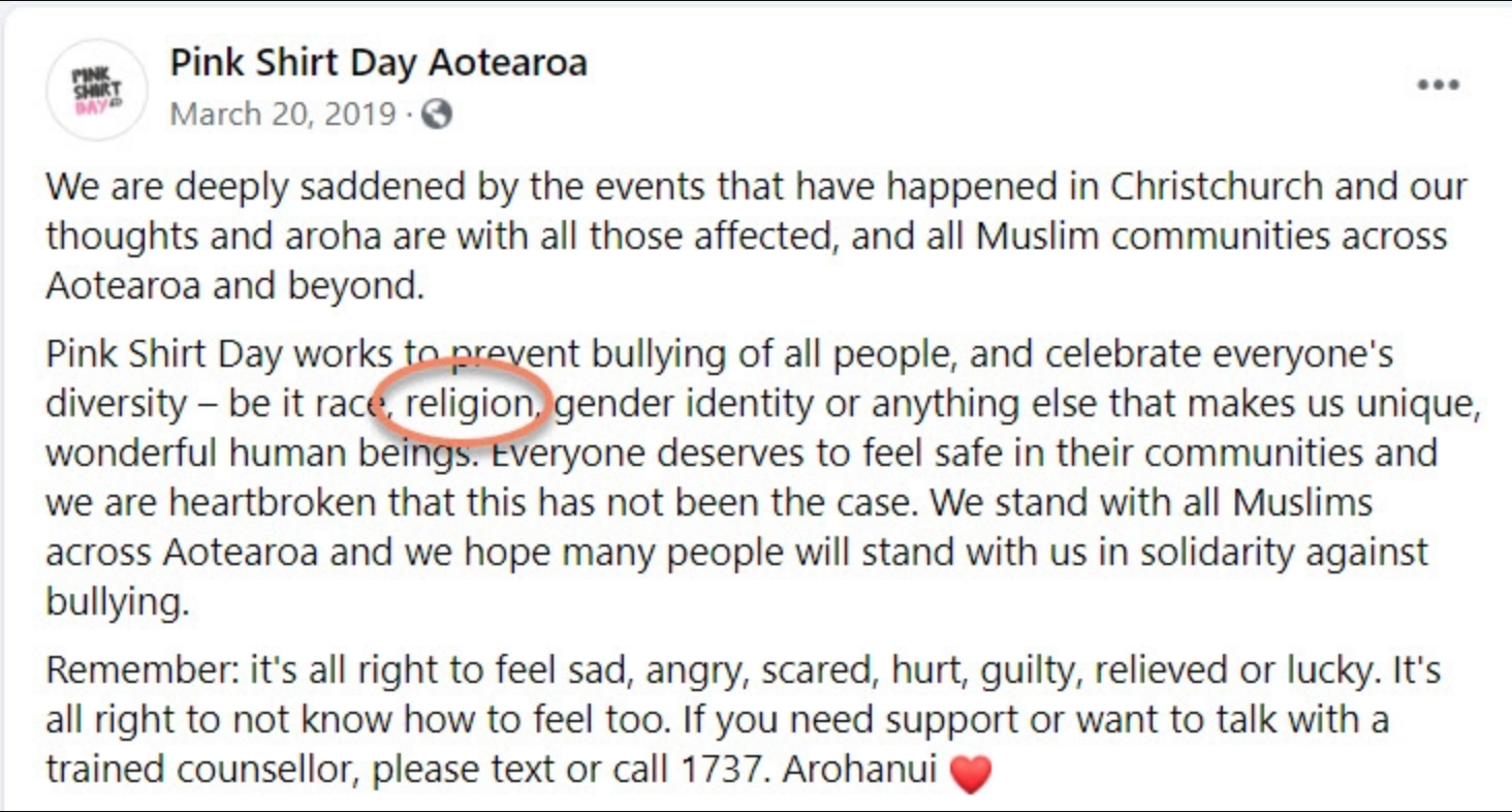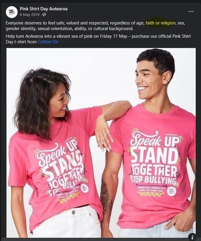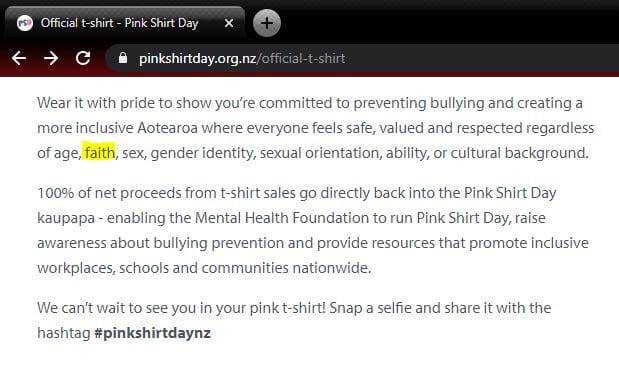 Which begs the question – why has the Pink Shirt Day quietly dropped the faith-based aspect?