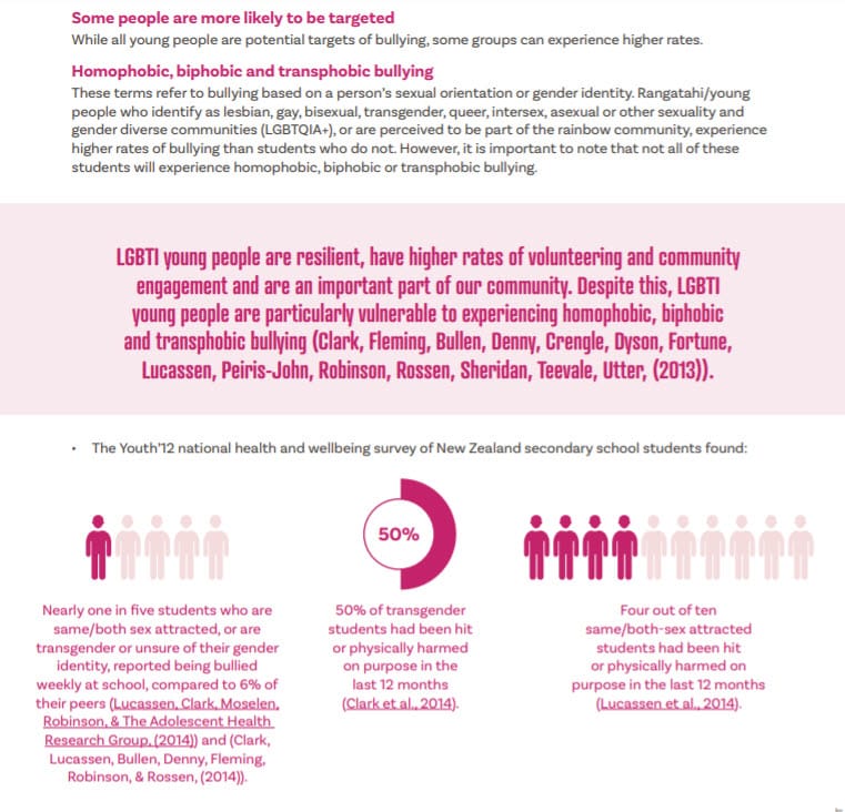 Canadian research shows that bullying on the grounds of same-sex attraction, intersex or gender identity is not one of the most common reasons for bullying.