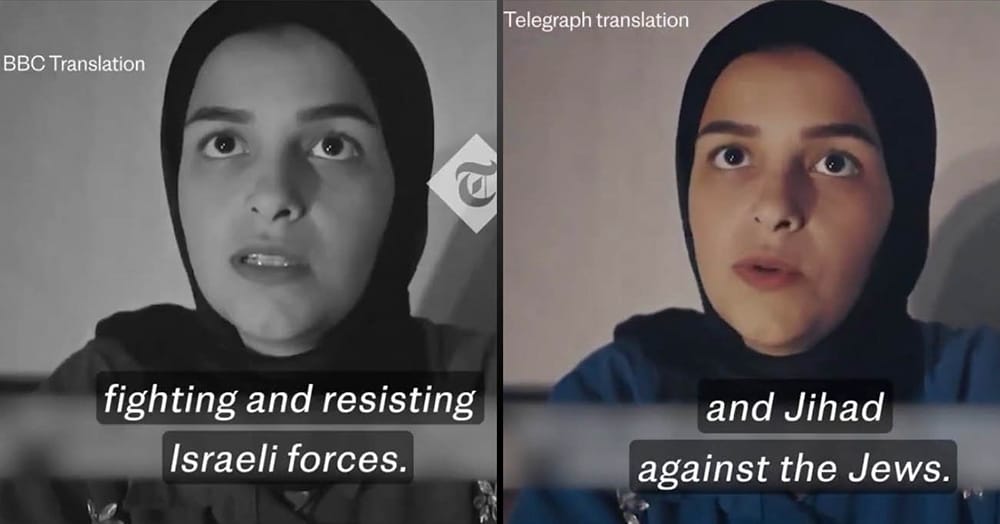 The makers also deliberately mistranslated the Arabic to make it appear to the British viewer that Palestinian terrorists in Gaza are not driven by racial or religious hatred. Where “Jews” was used in Arabic, “Israelis” appears in the subtitles. In addition, the word “jihad” was removed from translations.