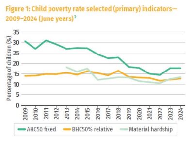 - 156,600 children (13.4%) are in material hardship, higher than the 2018 baseline