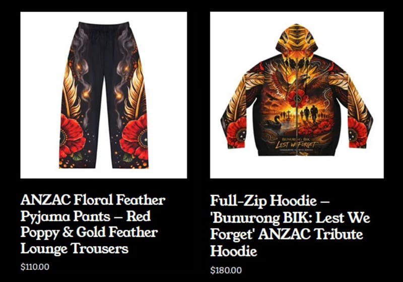 It gets worse: judging from the merch on his website, which is currently closed, the designs on the (overpriced) gear not only appears to be AI-generated, but also uses Anzac imagery and symbolism that is heavily protected by law, by the Department of Veterans’ Affairs. Selling Anzac-themed merchandise without permission can attract fines up to $10,000.