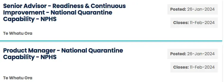 I would have hoped it would all be discussed in an inquiry. But even if it is – this doesn’t seem to matter as government has not just set this quarantine system up and spent millions on it – Te Whatu Ora/Health NZ are now recruiting permanent jobs to manage it.