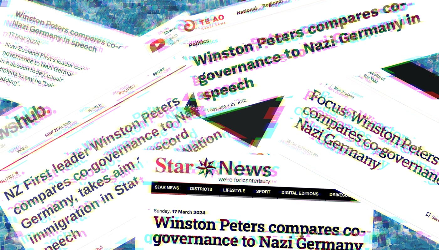 Every single legacy media outlet ran deceptive headlines claiming that Winston Peters compared co-governance with Nazi Germany, or the Holocaust. It was all lies.