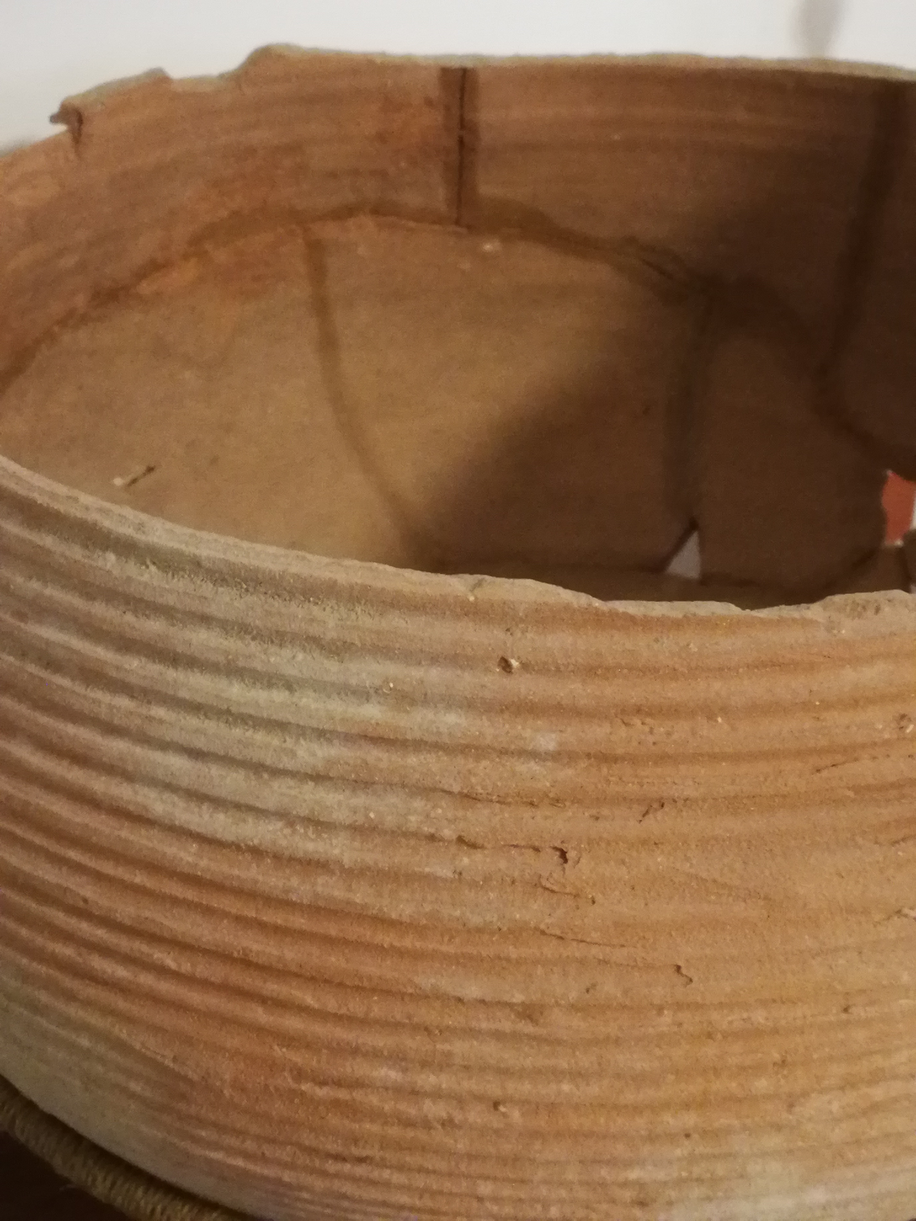 My second great find was on the coast to the south of the remains of Herod’s coastal aqueduct that fed Caesarea. While walking on the beach with my wife and dog we glimpsed the outline of an upturned clay vessel in a dune that had been recently eroded by a storm. As I cleared the sand away from around the vessel it became apparent that it was whole and upside down, but also clearly fractured into mostly large pieces. We gently removed all the pieces, took it home and my wife painstakingly reconstructed it and glued it together.