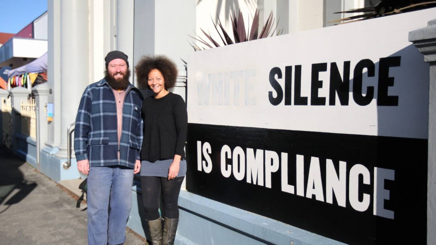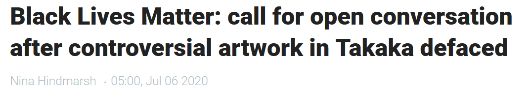 Desperately seeking their fifteen-minute share of fame, two confused shouty-people are woe begotten, poor things, after their masterpiece was “defaced” by an unknown, but public-spirited, artwork-corrector in the hippy-hangout of Takaka, in Golden Bay.