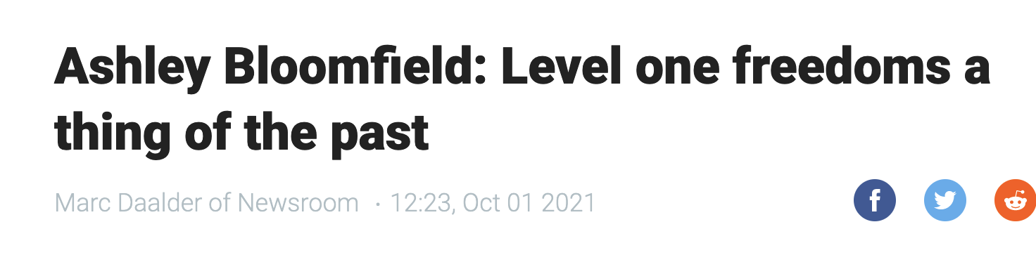 As David Farrar points out, these freedoms that Ashley Bloomfield has decreed are a thing of the past are actually rights that he has taken away and appears to be unwilling to give back: