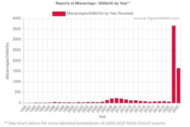 It’s not all good news from the WHO of course. They still recommend pregnant women to get vaccinated which is just absolutely insane, especially when we know the shots cause menstrual problems in women. Look at this chart showing a whopping 4070% increase in VAERS miscarriage reports after the mRNA shots was forced upon the population.