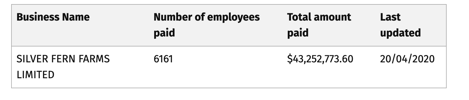 At a time when every business owner who is not in an essential industry is taking an absolute bath, it is disgraceful that essential industries are taking the subsidy. Meat Works are an essential industry and are able to keep processing. So why are Alliance & Silver Fern Farms taking the subsidy?