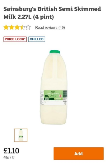 We live in the land of milk and honey, but look at what they pay for milk in the UK. (Sainsbury is not a budget supermarket).