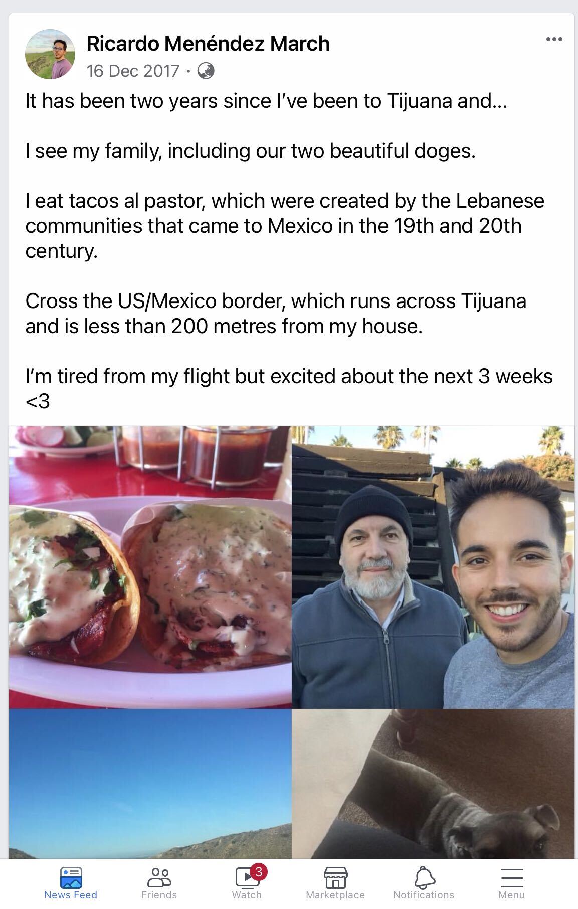 On a Facebook post in December 2017 he said it was the first time in two years that he’d made it back to Mexico. He went back in 2015 before he got his citizenship in 2017.