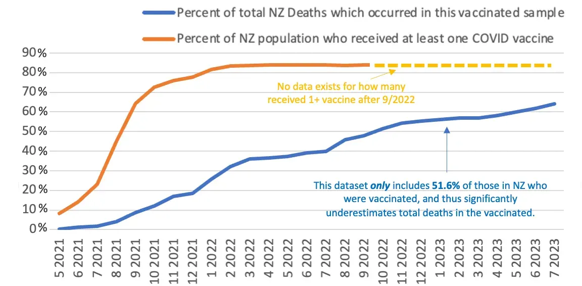 Recently, an insider at New Zealand’s ministry of health provided Steve with records tagged to the individual’s age, time of vaccination, number of vaccinations, and date of death (if applicable). This was extremely useful for untangling what is going on, particularly given that New Zealand has a relatively small population (5.2 million people) and is known for having relatively good record keeping.