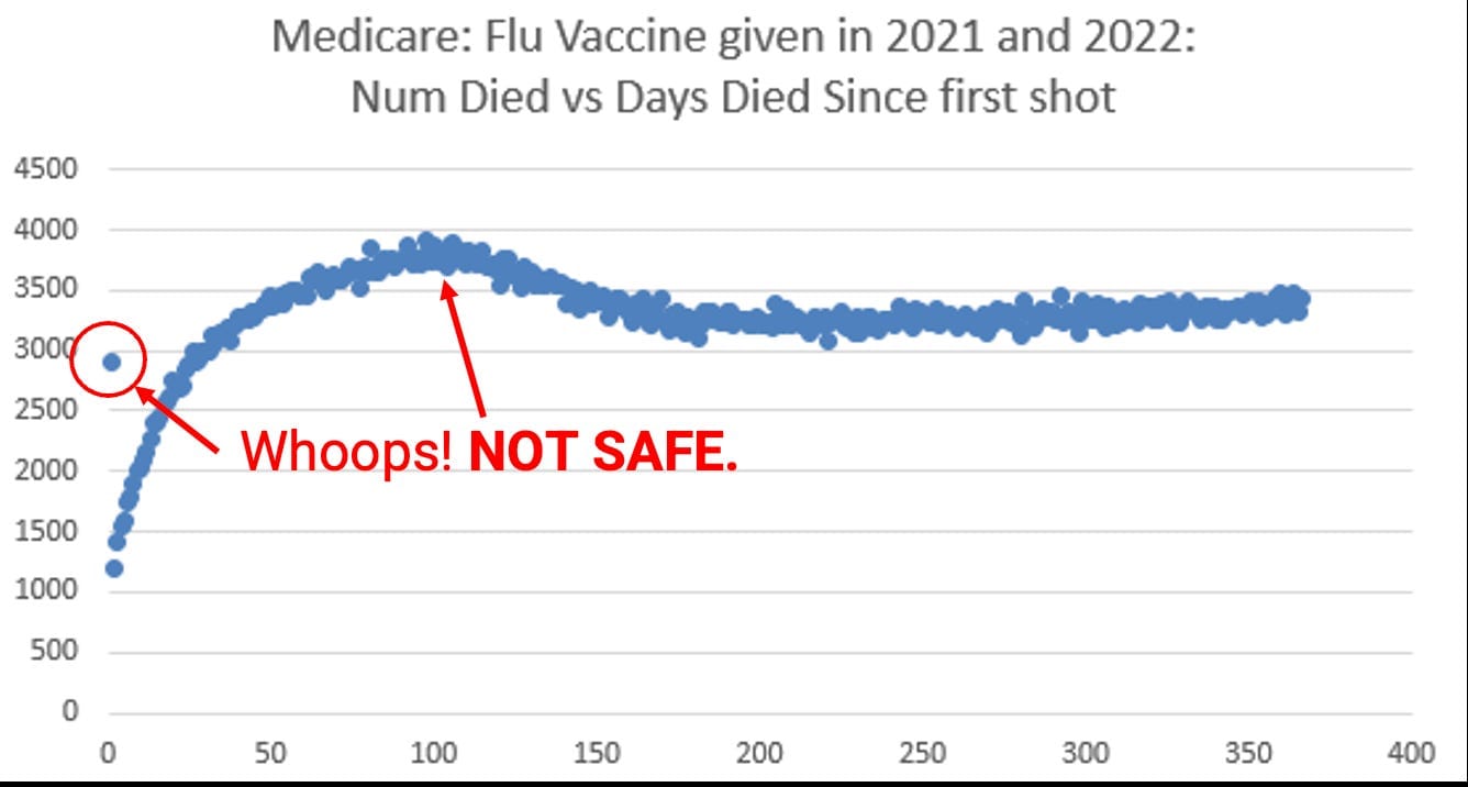 Next, let’s go to the flu shot, a vaccine I consider to be more problematic and likely to injure you (e.g., I’ve run into far more cases of significant injuries following the flu vaccine):
