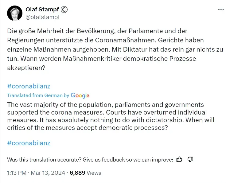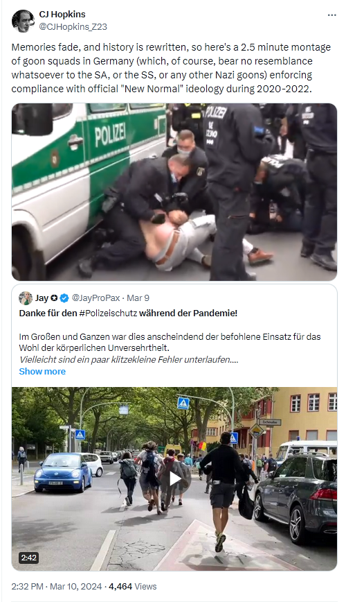 No, this is definitely not the German authorities staging a public ‘accountability’ spectacle in order to memory-hole what happened during 2020–2023 and enshrine the official narrative in history. There’s going to be a formal “Inquiry Commission” – conducted by the same German authorities that managed the “crisis” – which will get to the bottom of all the regrettable but completely understandable “mistakes” that were made in the heat of the heroic battle against The Divisive Virus!