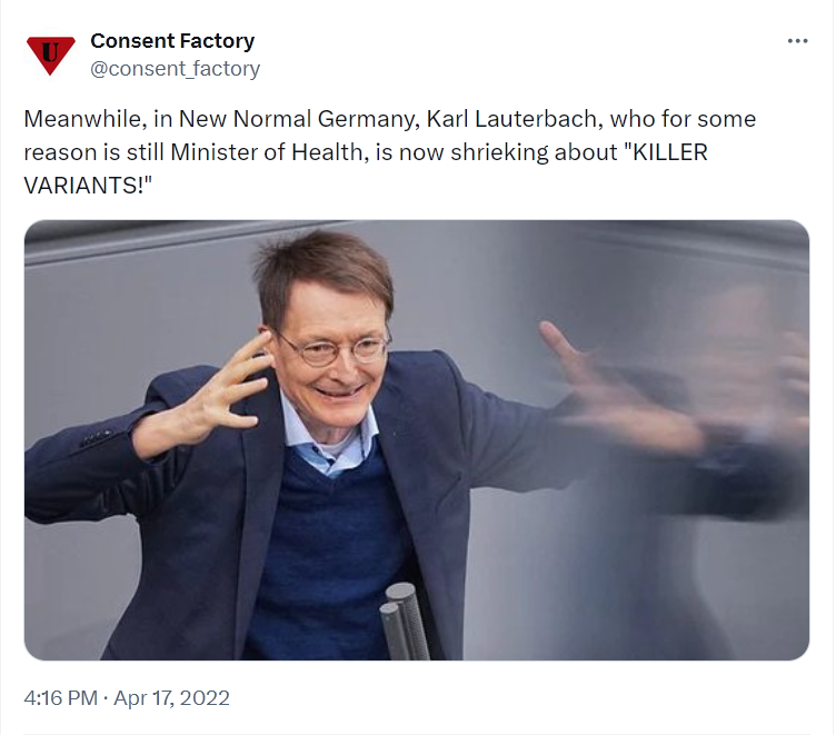 And then there’s the whole ‘vaccination’ business. The commission will certainly want to inquire into that. They will probably want to start their inquiry with Karl Lauterbach, and determine exactly how he accidentally lied to the public, over and over, and over again…