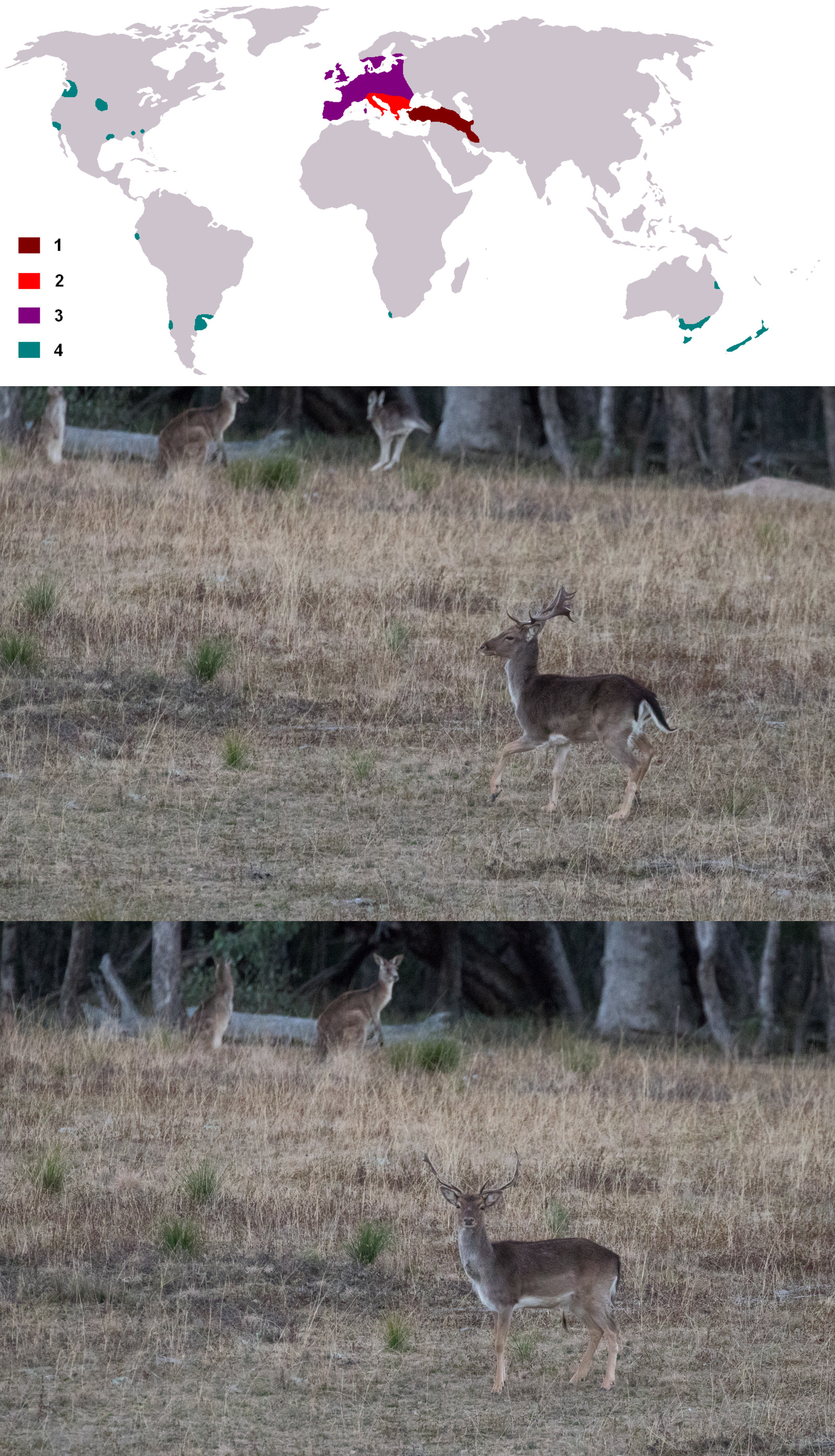 Due to human introductions, the Fallow Deer has populations on every continent except Antarctica. During the last ice age, they were restricted to the Middle East and southern Europe.