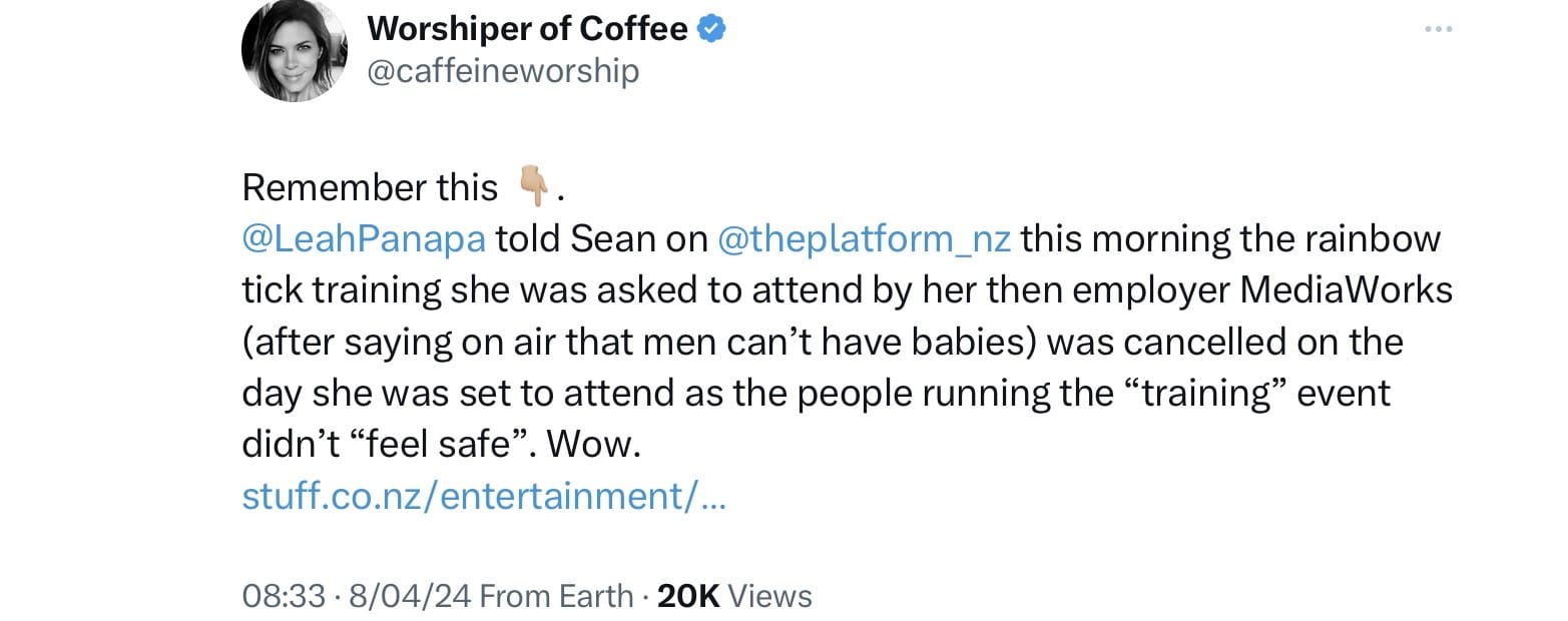 The funny thing is, when Panapa turned up to complete her “rainbow training” the rainbow organisers had cancelled because they didn’t feel safe!