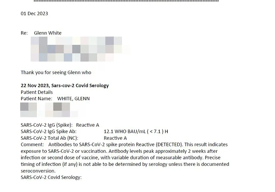 Find below, the same serology test well over a year later, confirming high levels of SARS-CoV-2 antibodies are persisting: