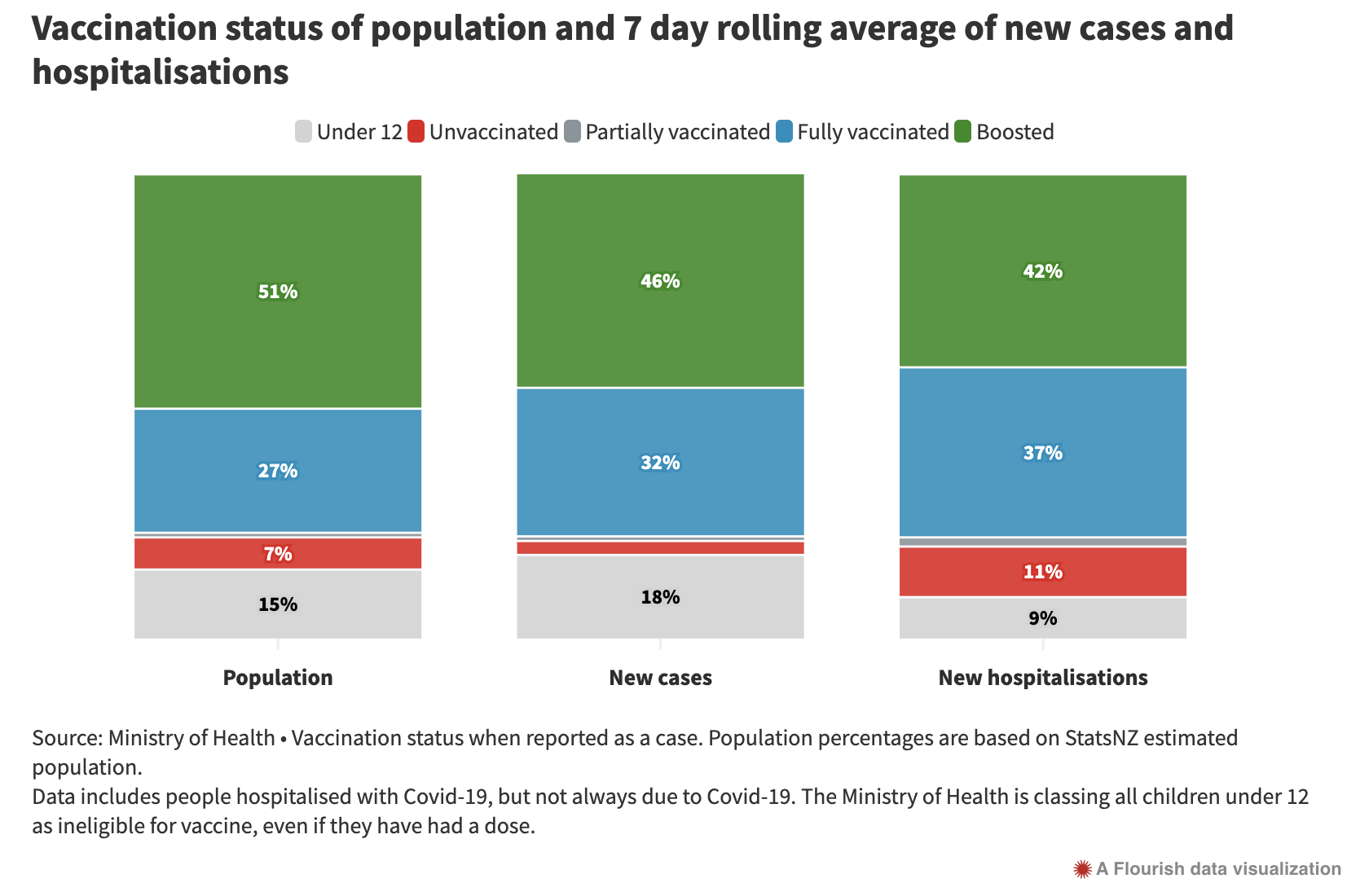 Again Ardern’s lie, that you won’t get sick is exposed. To really ram it home look at these statistics where vaccinated and boosted people account for 78% of all cases and 79% of all hospitalisations.
