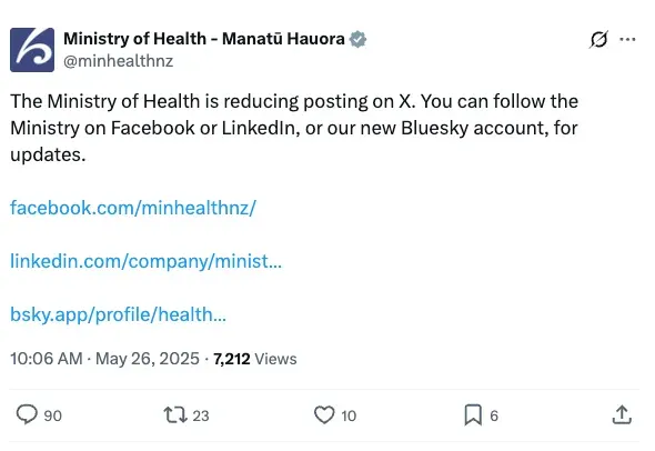 1. Ministry of Health leaving X for a dying platform full of furries and CSAM