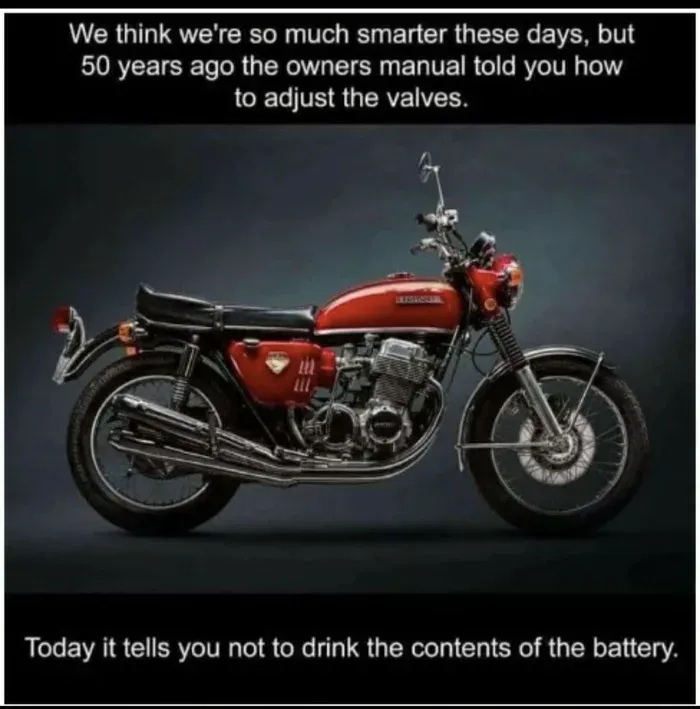 Okay, time to fess up. Which of you morons out there have made all these warnings necessary? Give us a show of hands, so we can count your fingers, and figure out who are the Evil Knievel’s out there…and why the rest of us have to be subjected to an endless barrage of patently obvious sources of risk.