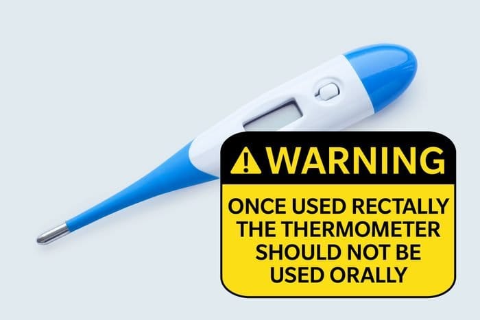 Once used rectally, the thermometer should not be used orally. On a cordless hand tool: Not intended for use as a dental drill. Takeaway coffee cup: Avoid pouring on crotch area.
