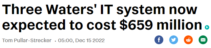 On 2 July the Water Services Entities will have spent $1 billion on this ‘Better Off Funding’ largesse, several hundreds of millions on buildings, staff, vehicles, coffee machines etc, $659 million on IT systems and who knows what else. Let’s be generous and say it only totals $2 billion debt on day 2.